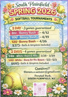 2026 South Plainfield Ponytail Softball Tournament Dates: Registration is Open!